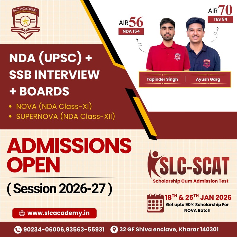 Join SLC Academy Kharar for NDA 2026–27 prep! - Education, training, lessonsRef. number: 3209274 Updated: 19-11-2025 09:54